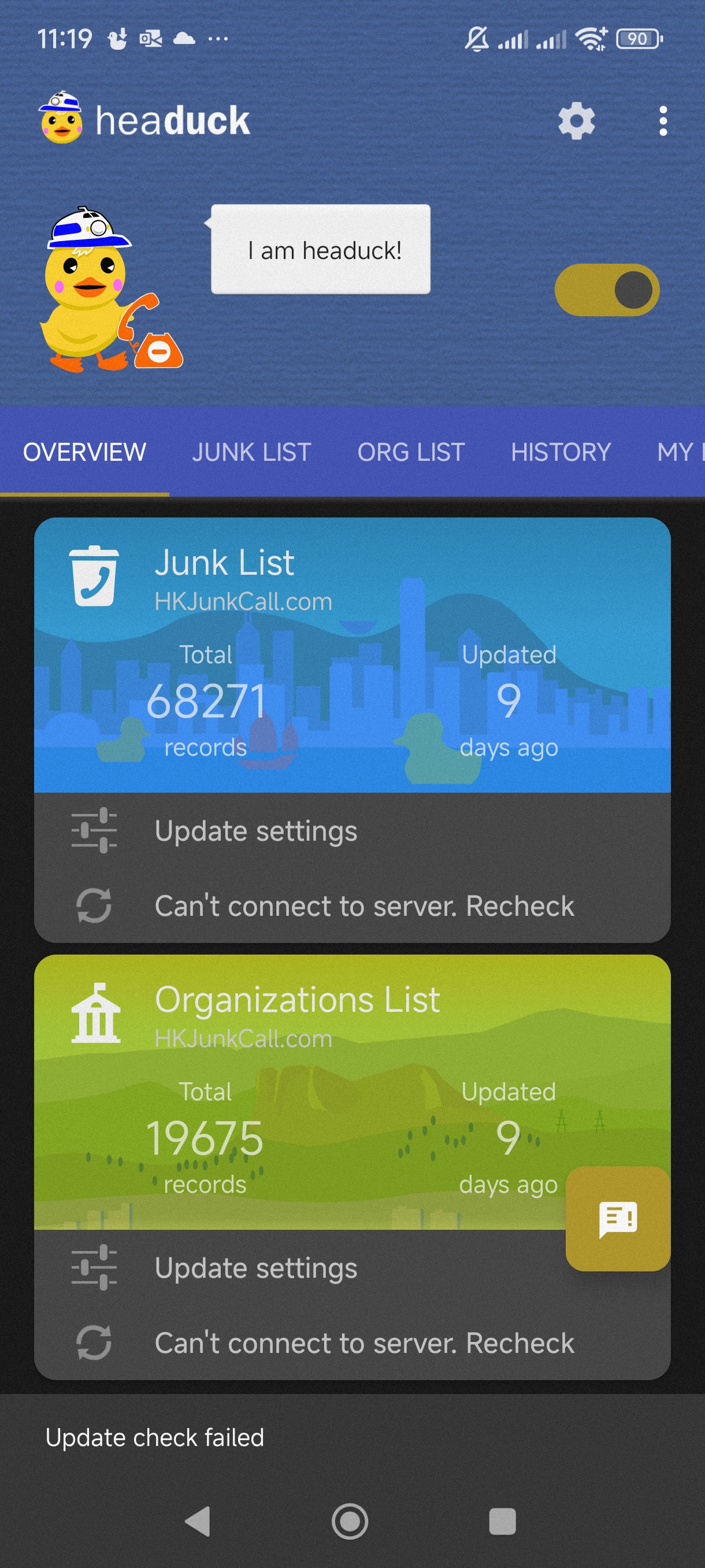 你好headuck遇到了更新的問題, 最後更新約在九天前 請問是否hkjunkcall server 的問題?